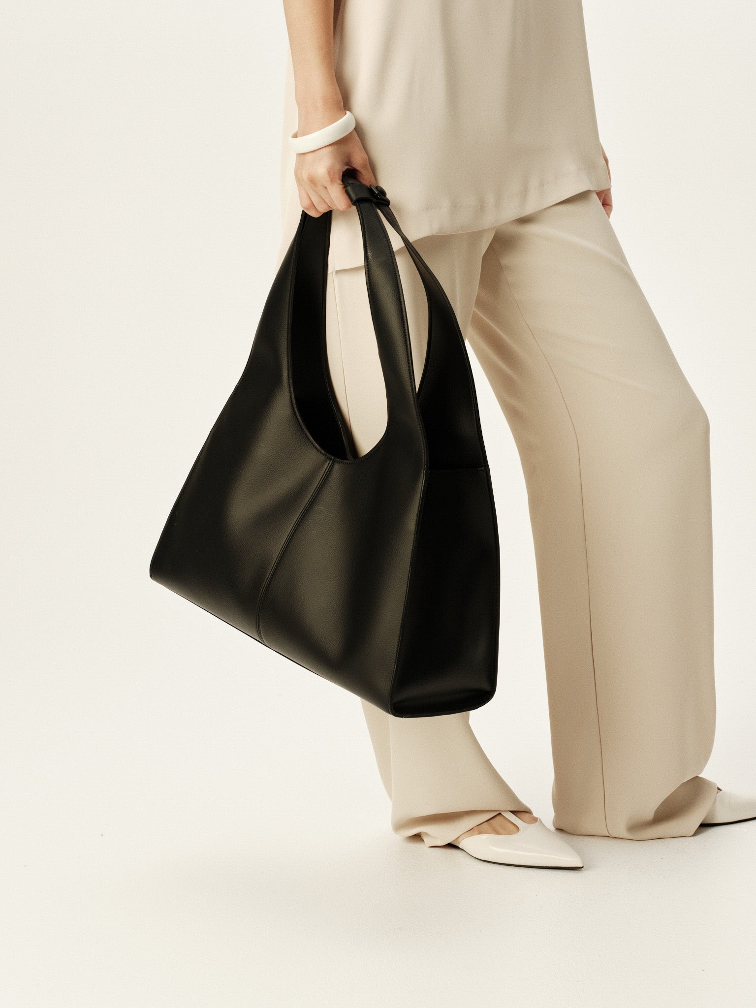 A soft hobo-style silhouette made for the beautiful chaos of everyday life. With its relaxed shape and roomy interior, Ida carries it all — laptop, errands, last-minute dinner plans — without ever losing its sculptural edge. The clean front seam adds a quiet architectural detail, striking a perfect balance between structure and slouch. Rooted in Freja’s signature minimalism, the Ida tote is an understated companion for the everyday.