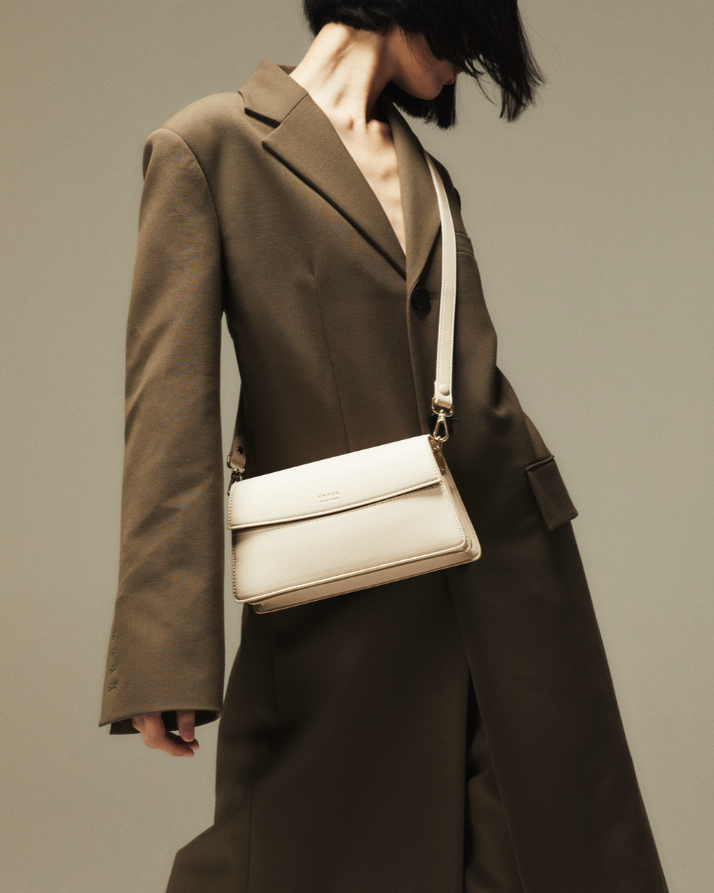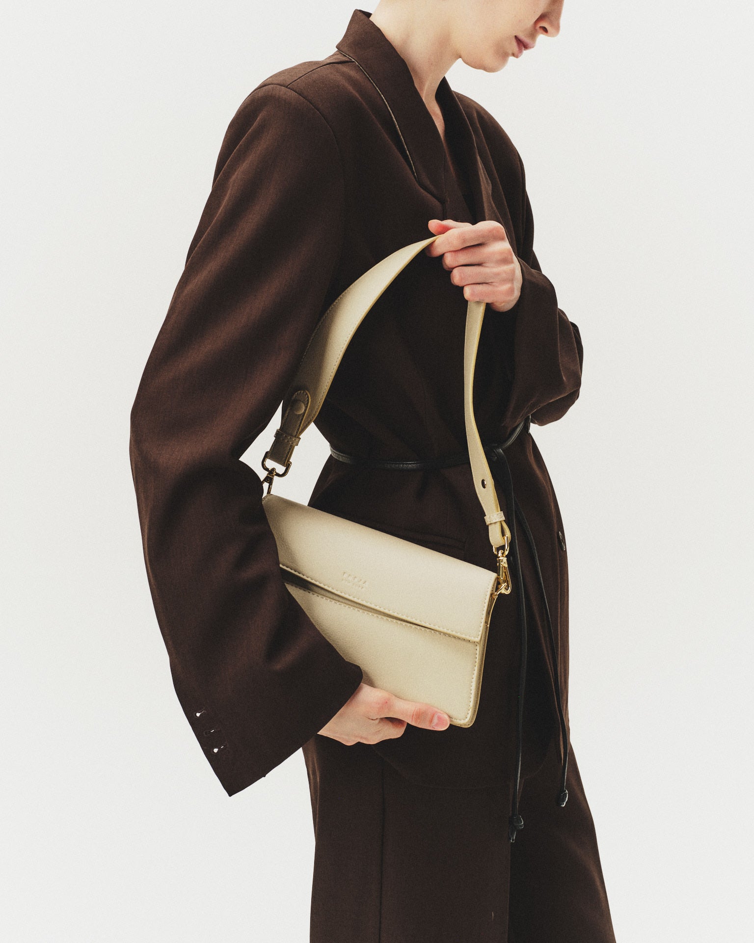 A miniature version of a classic shoulder bag, with every bit of the functionality. Perfectly proportioned with two interior compartments and a zip divider to hold all your essentials. Detachable long strap effortlessly converts into a crossbody. Handcrafted from our soft pebbled vegan ultrafiber leather.